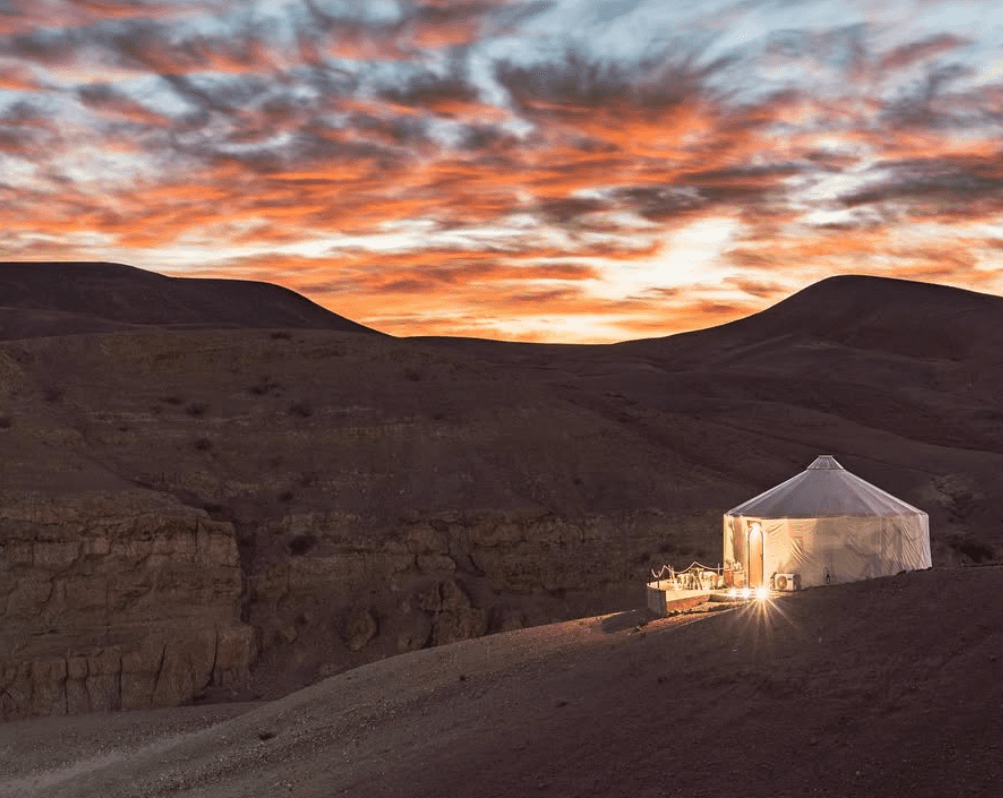 Une séance Quotidienne de yoga dans un dôme avec une vue à 360° sur le désert d'Agafay