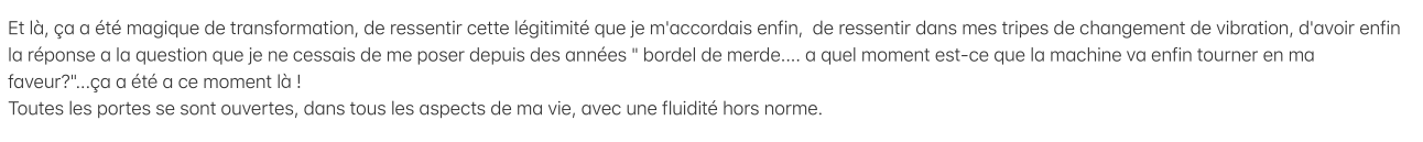 Tu veux changer de vie, sans avoir à tout plaquer, tout casser, tout recommencer ou fuir pour te sentir libre, vivante et alignée. Une vie où ton entourage se plugge naturellement à ton énergie, sans te la pomper et sans que tu n'aies besoin de te rouler par terre.